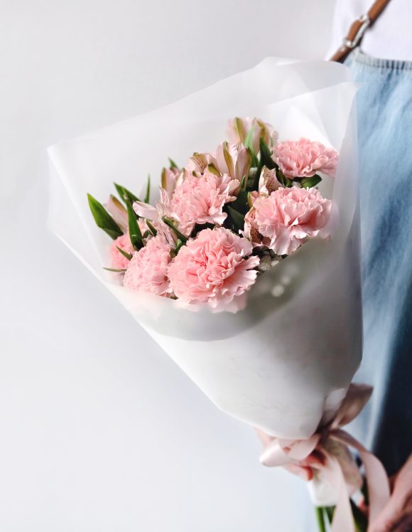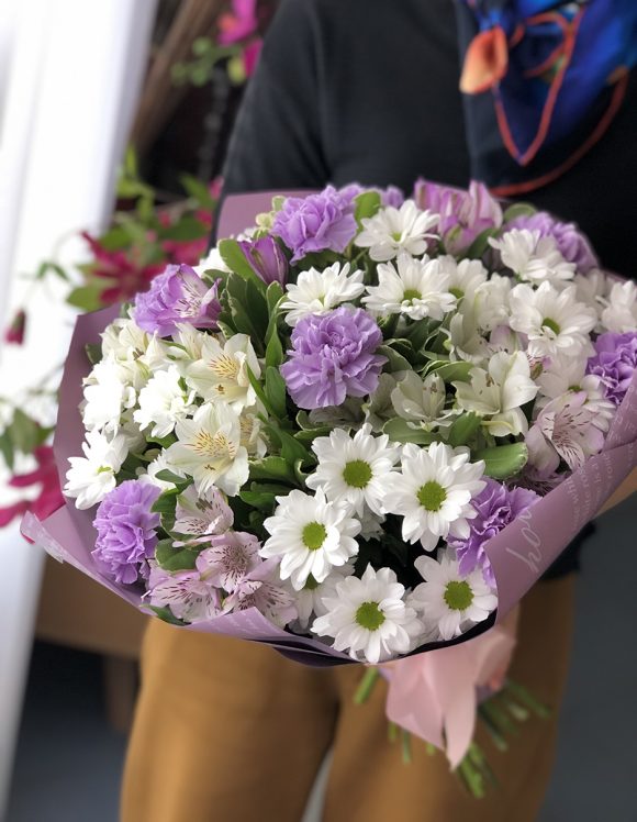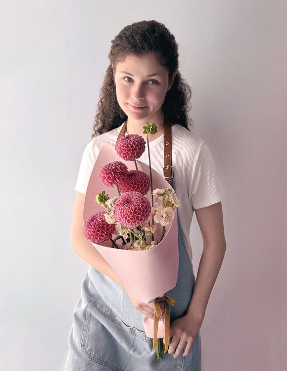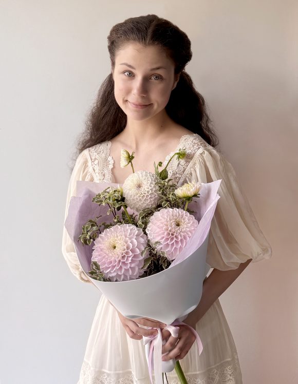 Внимание! Георгины цветы сезонные, букет актуален в августе и сентябре. О наличии спрашивайте у флориста.
