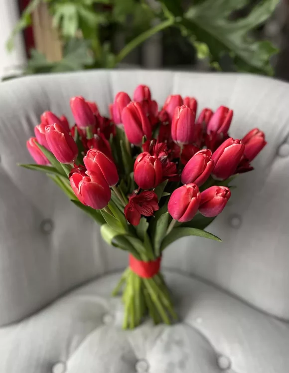 Внимание! Тюльпаны цветы сезонные - о наличие уточняйте у флориста. Предварительный заказ за 10 дней гарантирует его выполнение.