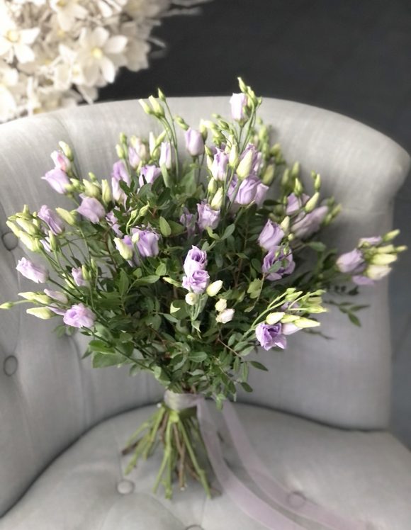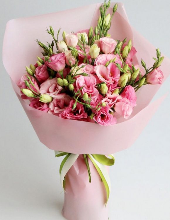 Состав букета: Эустома махровая 5 шт Бумага, ленты