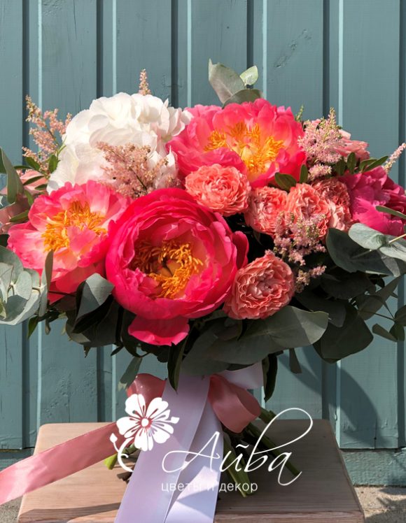 Внимание! Пионы цветы сезонные. букет актуален в мае-июле. Наличие уточняйте у флориста. Вы можете заказать любое количество пионов.