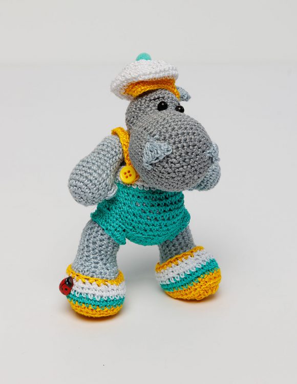 Мягкая игрушка Бегемотик ручной работы умещается на ладони. Все детали одежды снимаются, а штанишки даже застегивается на малюсенькие пуговки.Очень аккуратная работа мастера. Бегемотик связан с любовью, из душевного тепла Х/Б ниток, внутри антидепрессантный наполнитель, лапки собраны на шплинтах. Дарите на радость!