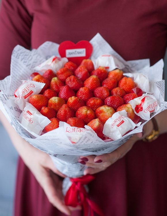 Композиции с макарунами и другими десертами, сладкими фруктами и ягодами, шоколадом, конфетами, орехами и сухофруктами – мы готовы воплотить в жизнь любую вашу идею. А если дополнить сладкий букет живыми цветами, этот презент точно оставит след в сердце вашего близкого человека.