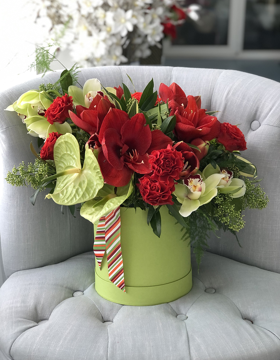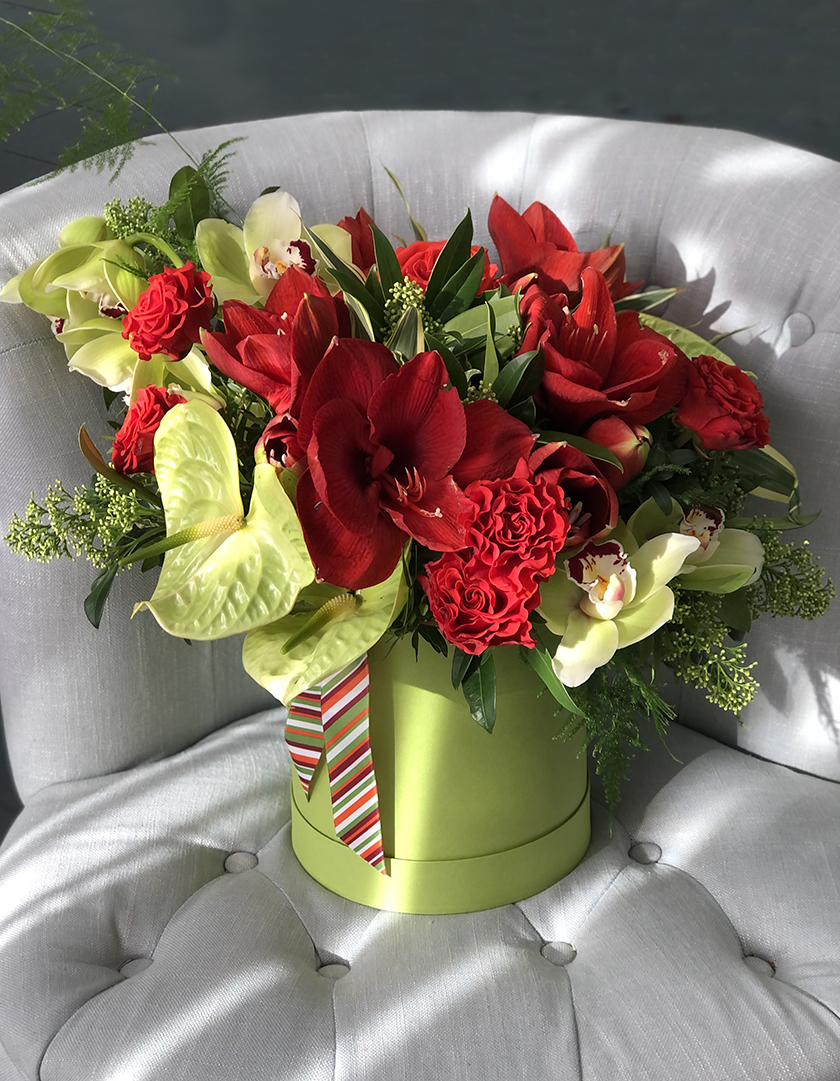 Внимание! Коробка полна экзотики, некоторые цветы сезонные. Композиция в данном составе актуальна с октября по апредь месяцы. Заказ лучше оформить за 10 дней.