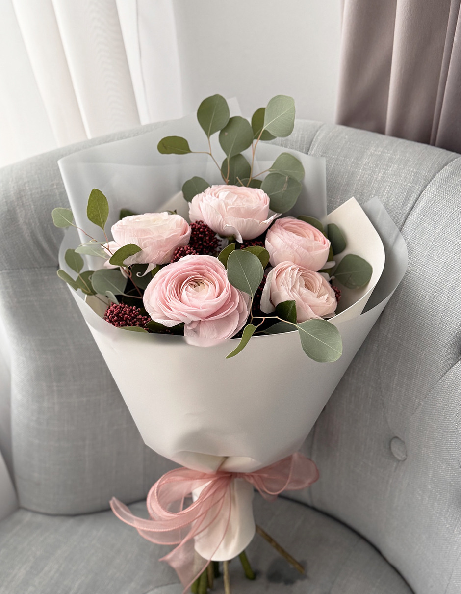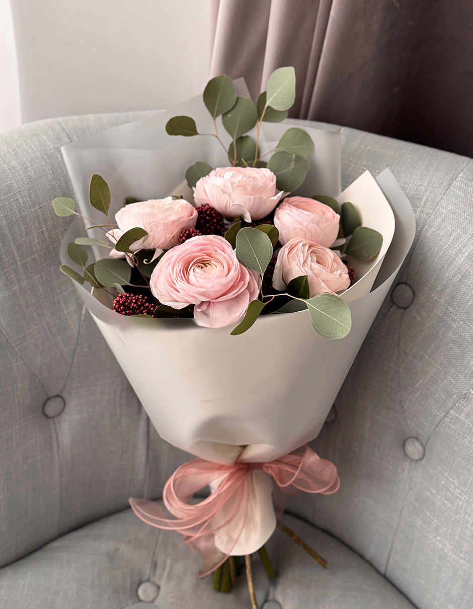 Внимание! Ранунукулюсы цветы сезонные, букет актуален с декабря до апрель месяцы.